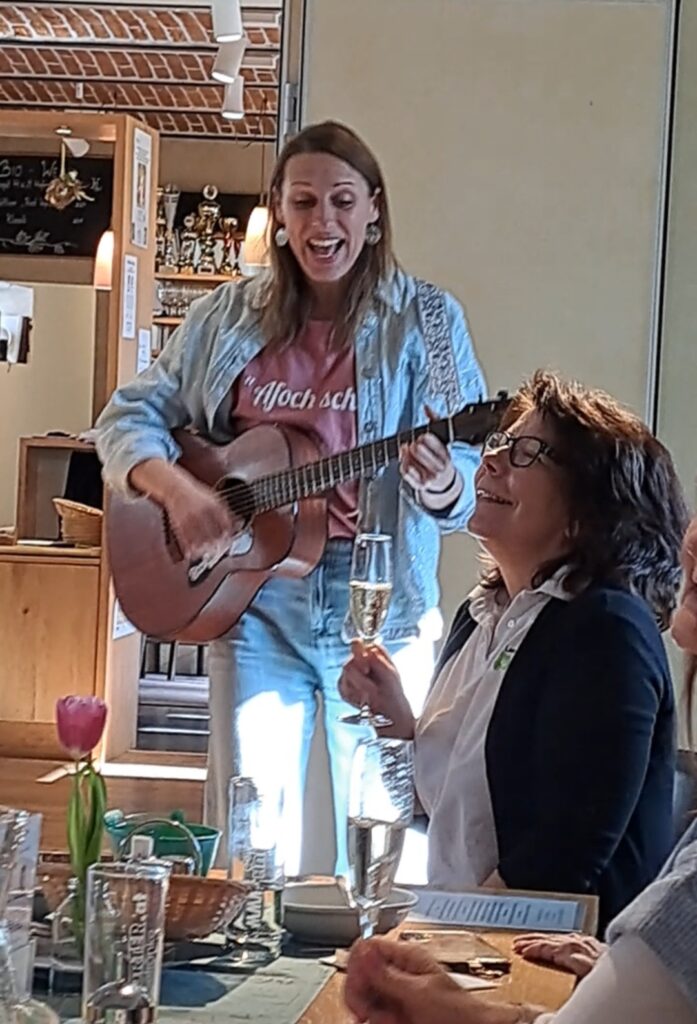 Für einen besonders persönlichen Moment sorgte Claudia Müller, die am Vortag ihren Geburtstag gefeiert hatte und die Runde mit einem Glas Sekt überraschte. Als liebevolle Aufmerksamkeit durfte sie zudem ein Ständchen genießen – angestimmt von Sängerin Margot Selina, die erstmals beim Unternehmerfrühstück dabei war und eine besonders stimmungsvolle Note in das Treffen brachte.